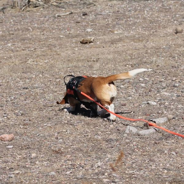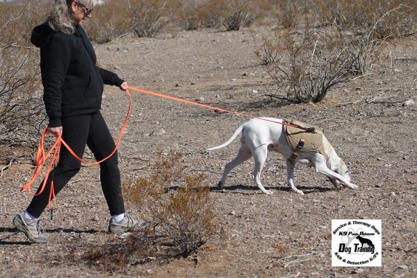 This 6-week class will build on the intro class, you and your dog will move forward into 1/2 mile tracks using live decoys. who will go get lost in the desert or urban settings. in some cases there will not be any scent article you will have to get the scent using methods learned in the intro class. tracking will take place at different times to keep the dog and you on point.